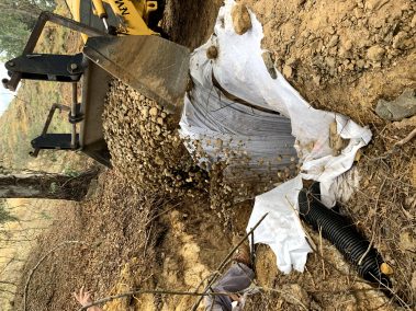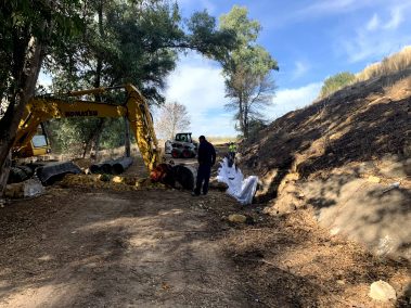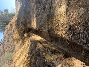 Mediante la ejecución de drenes californianos y muro de escollera, se ha logrado corregir el deslizamiento del enlace PK23 de la Autovía A-92